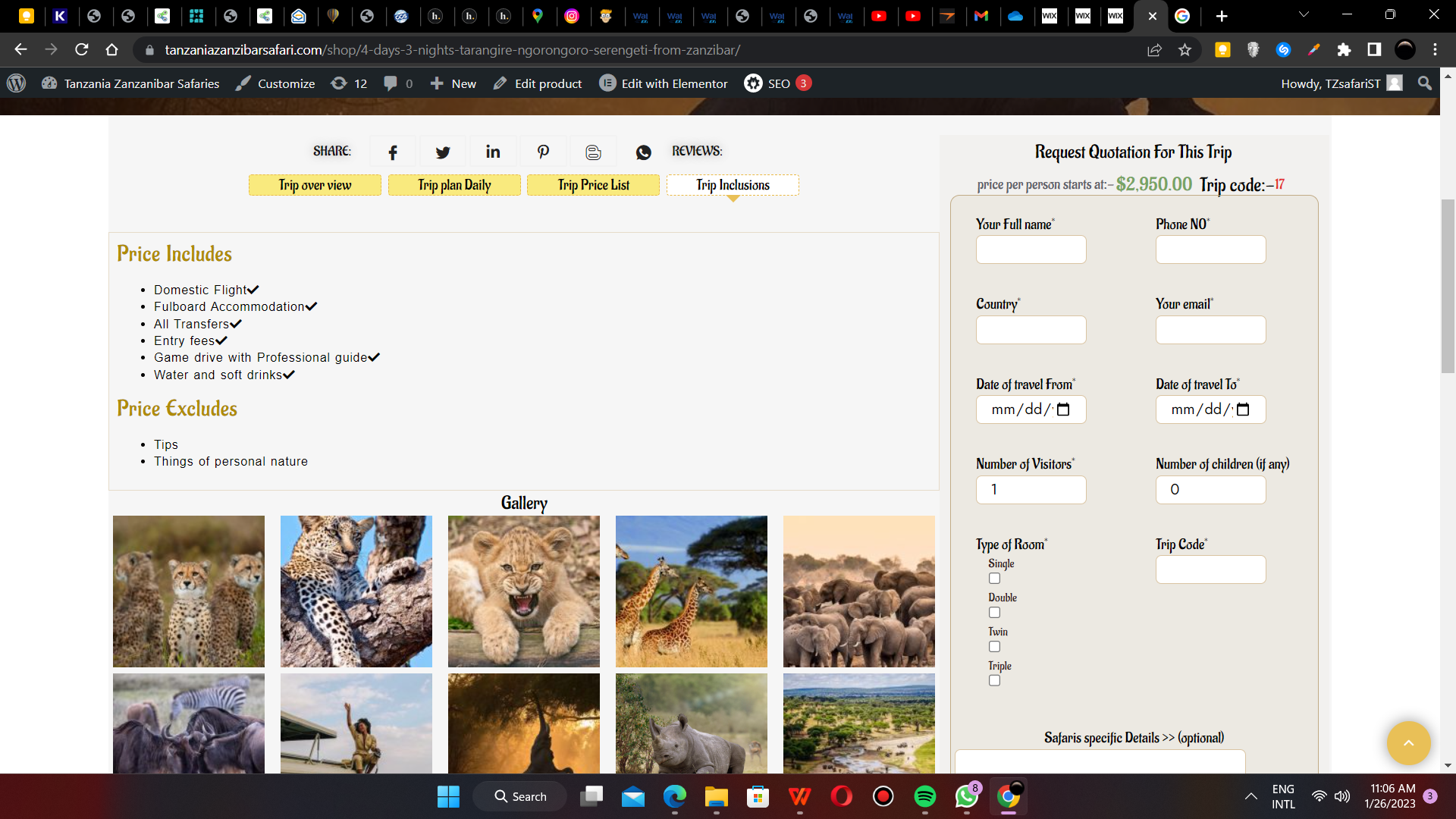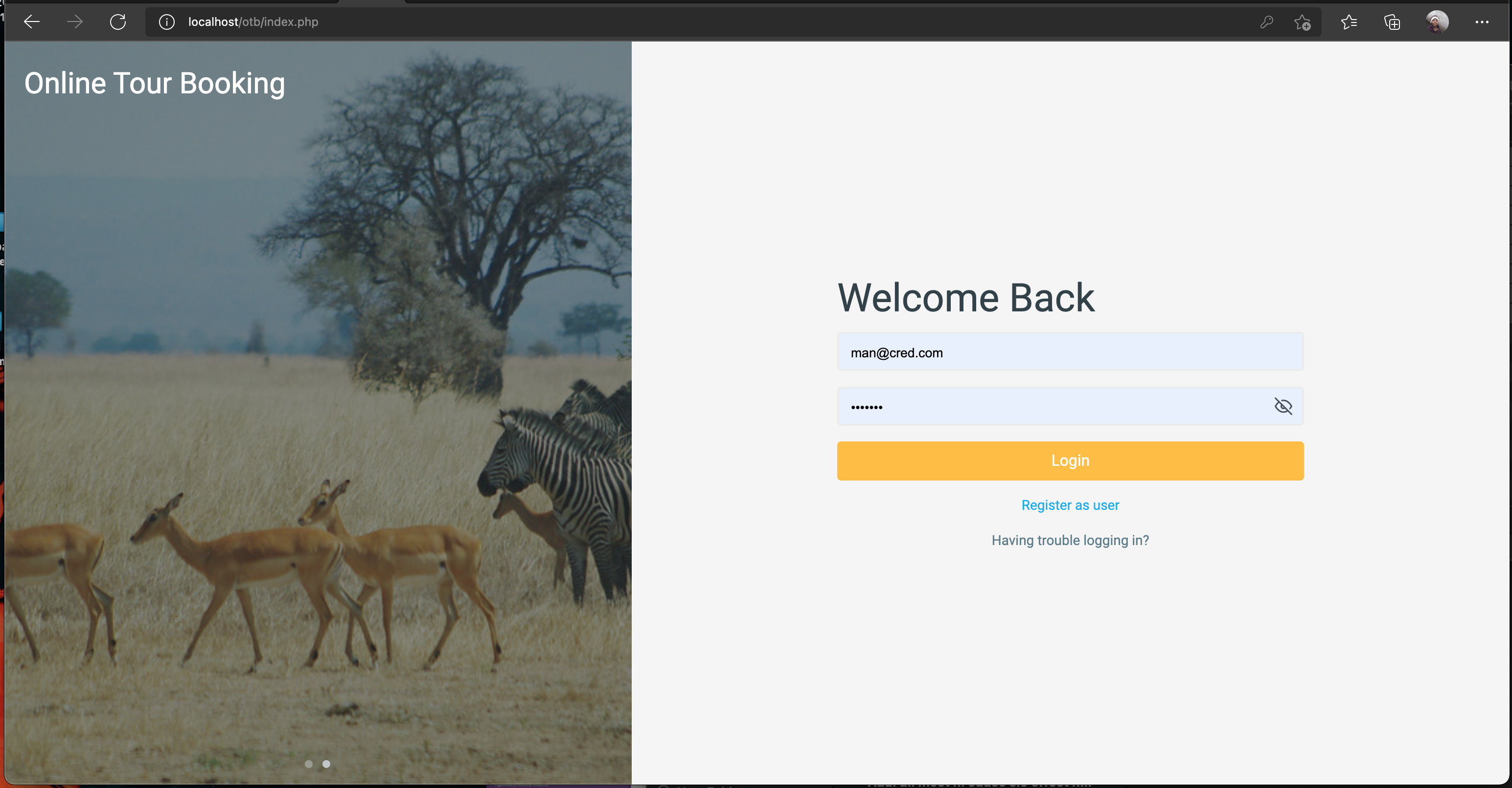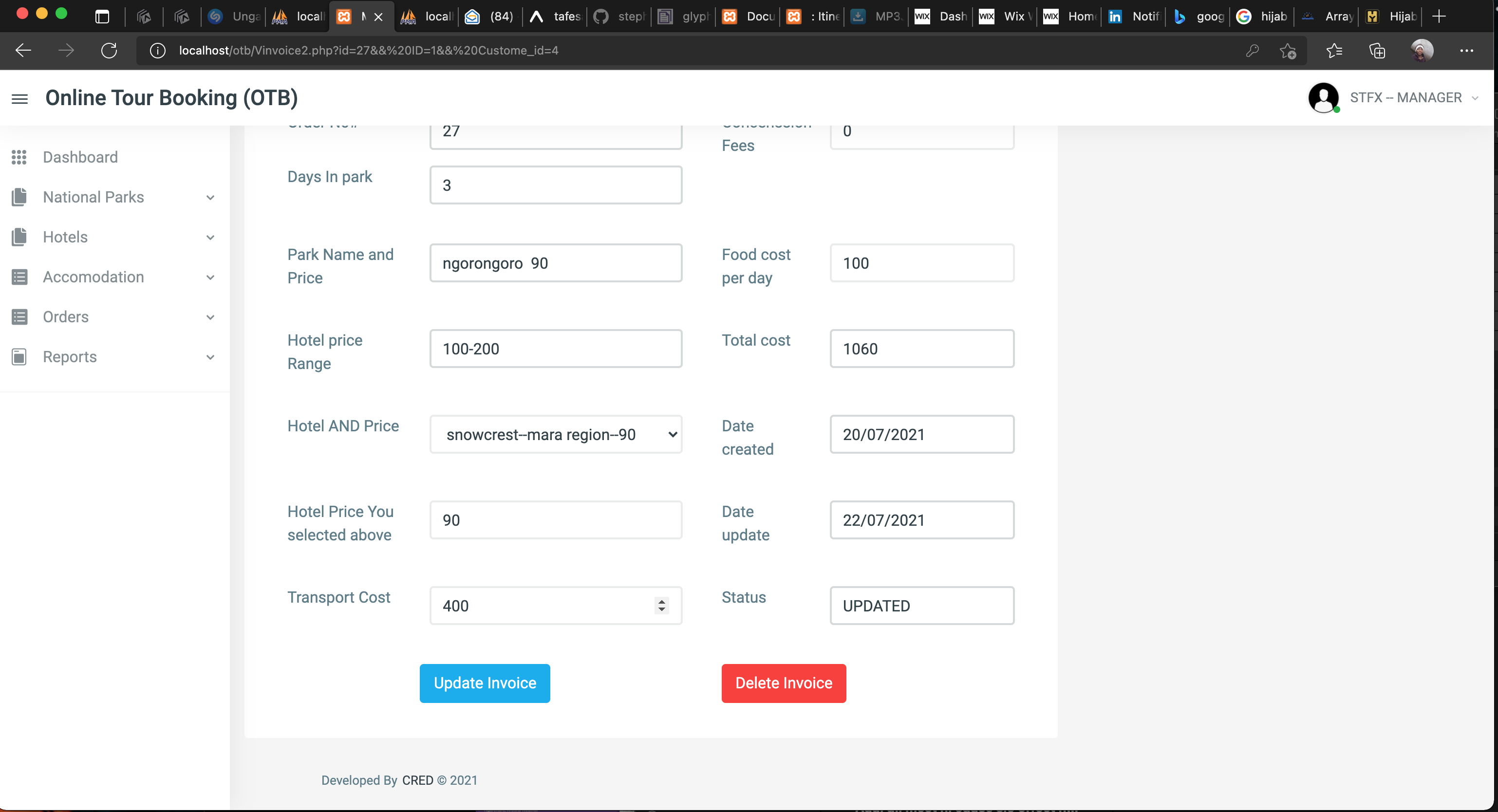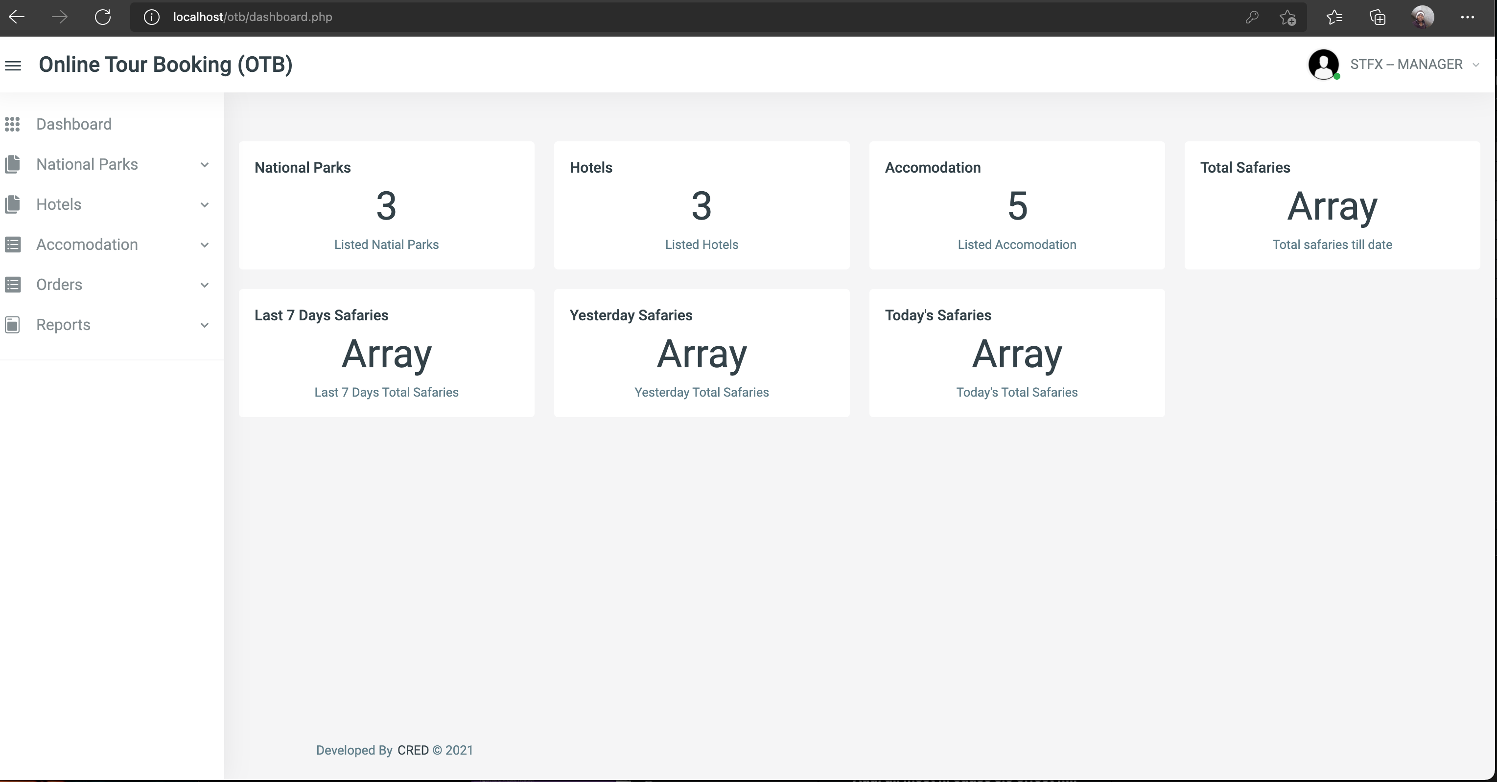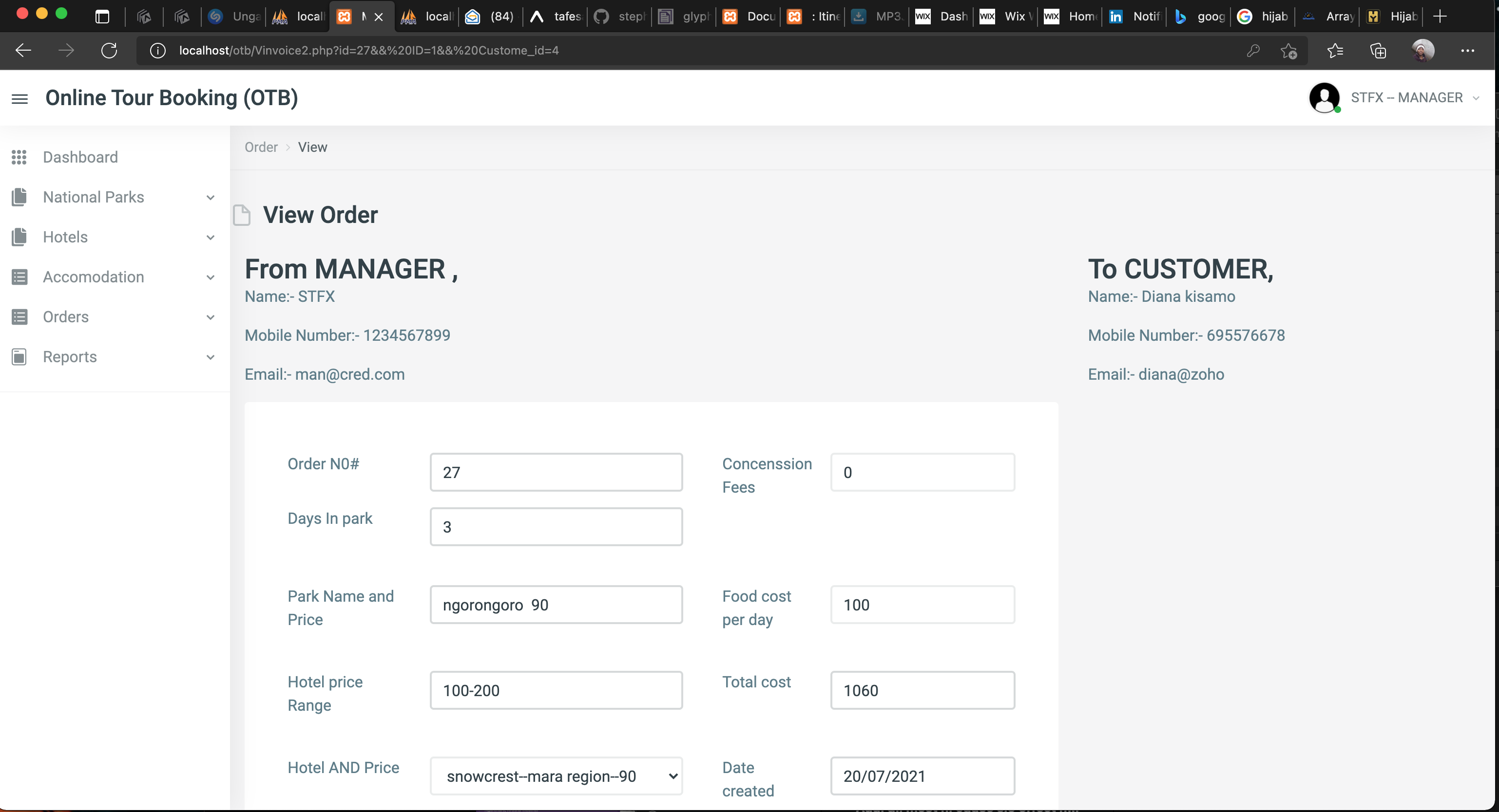 web system  design to be used by customer to request safaries  to national parks registered in the system and handles their invoices via the system but the project is still under development this project is localhosted thas why there is no link at the moment